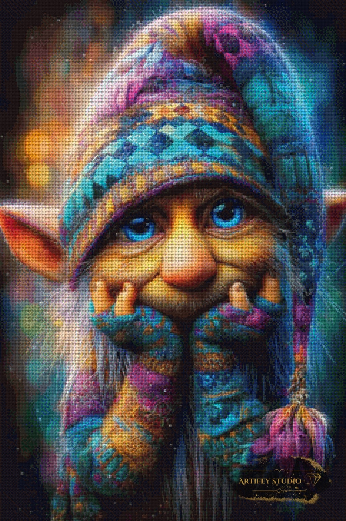 Mit diesem Diamond Painting Set gestaltest du ein detailreiches Kunstwerk in brillanten Farben. Das gezeigte Bild zeigt bereits die fertige, gepixelte Vorlage – so weißt du genau, wie dein Motiv später wirkt.