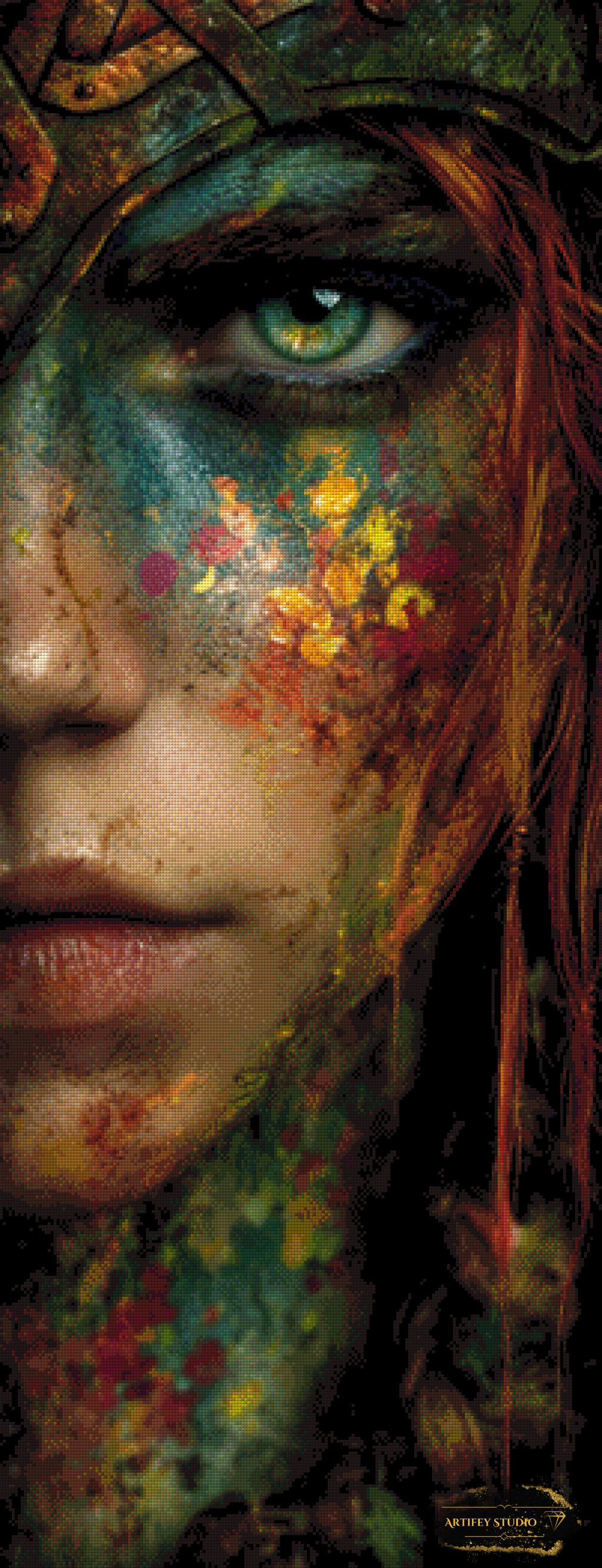 Mit diesem Diamond Painting Set gestaltest du ein detailreiches Kunstwerk in brillanten Farben. Das gezeigte Bild zeigt bereits die fertige, gepixelte Vorlage – so weißt du genau, wie dein Motiv später wirkt.