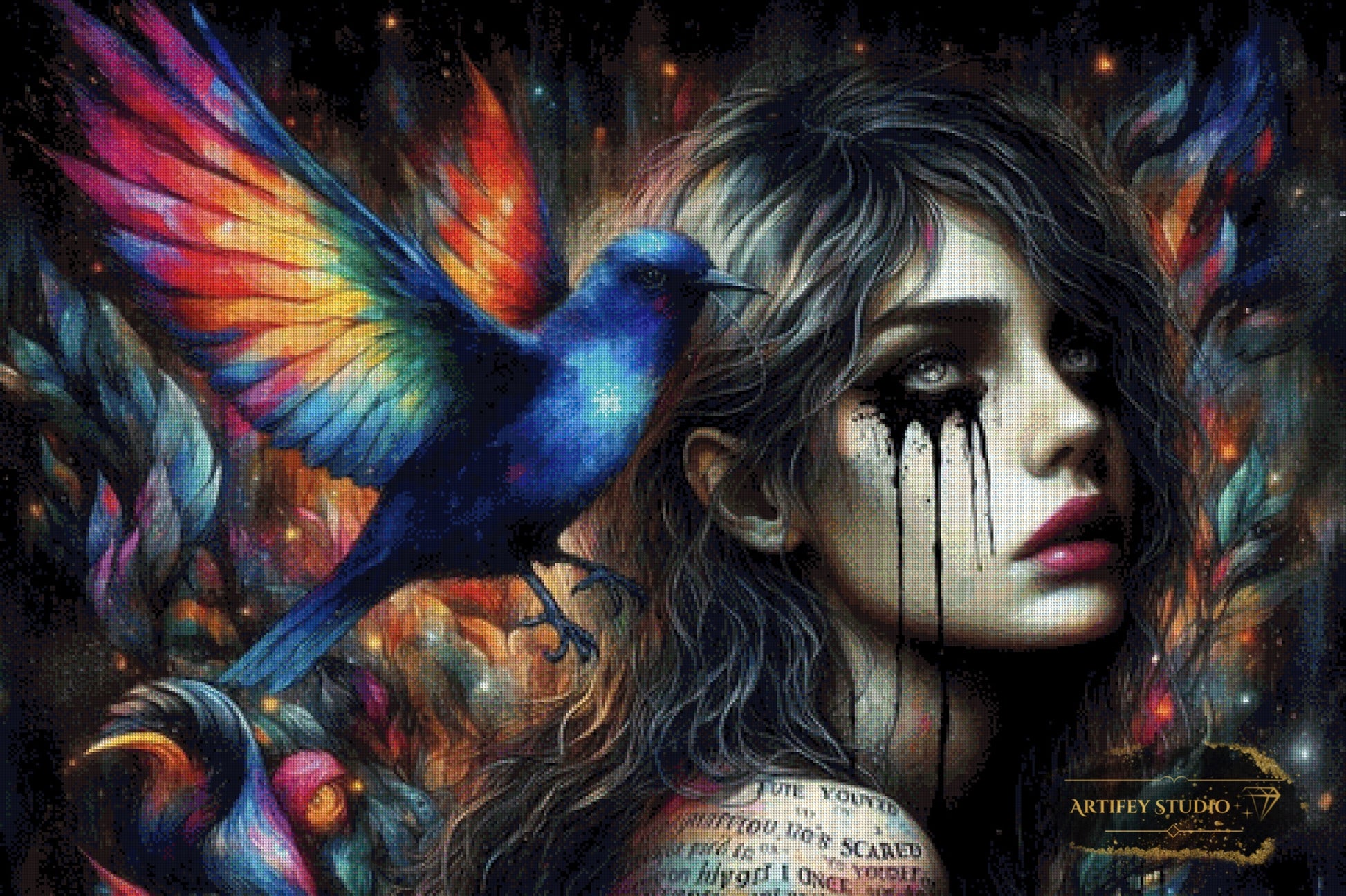 Mit diesem Diamond Painting Set gestaltest du ein detailreiches Kunstwerk in brillanten Farben. Das gezeigte Bild zeigt bereits die fertige, gepixelte Vorlage – so weißt du genau, wie dein Motiv später wirkt.