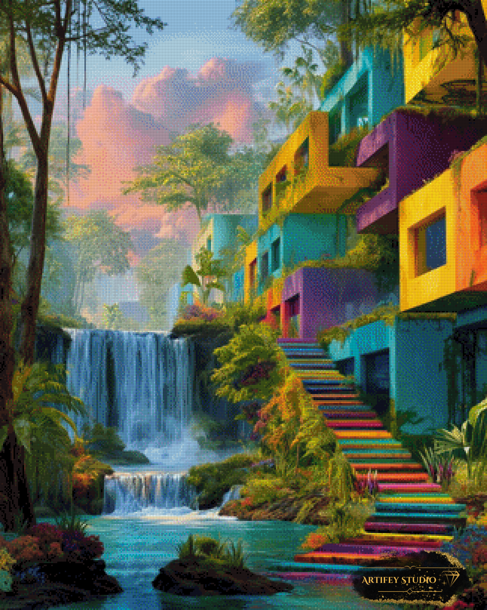 Abstrakte Dschungelstadt by Salzkatze Diamond Painting Set 80x100 cm | 330 Farben 🎨