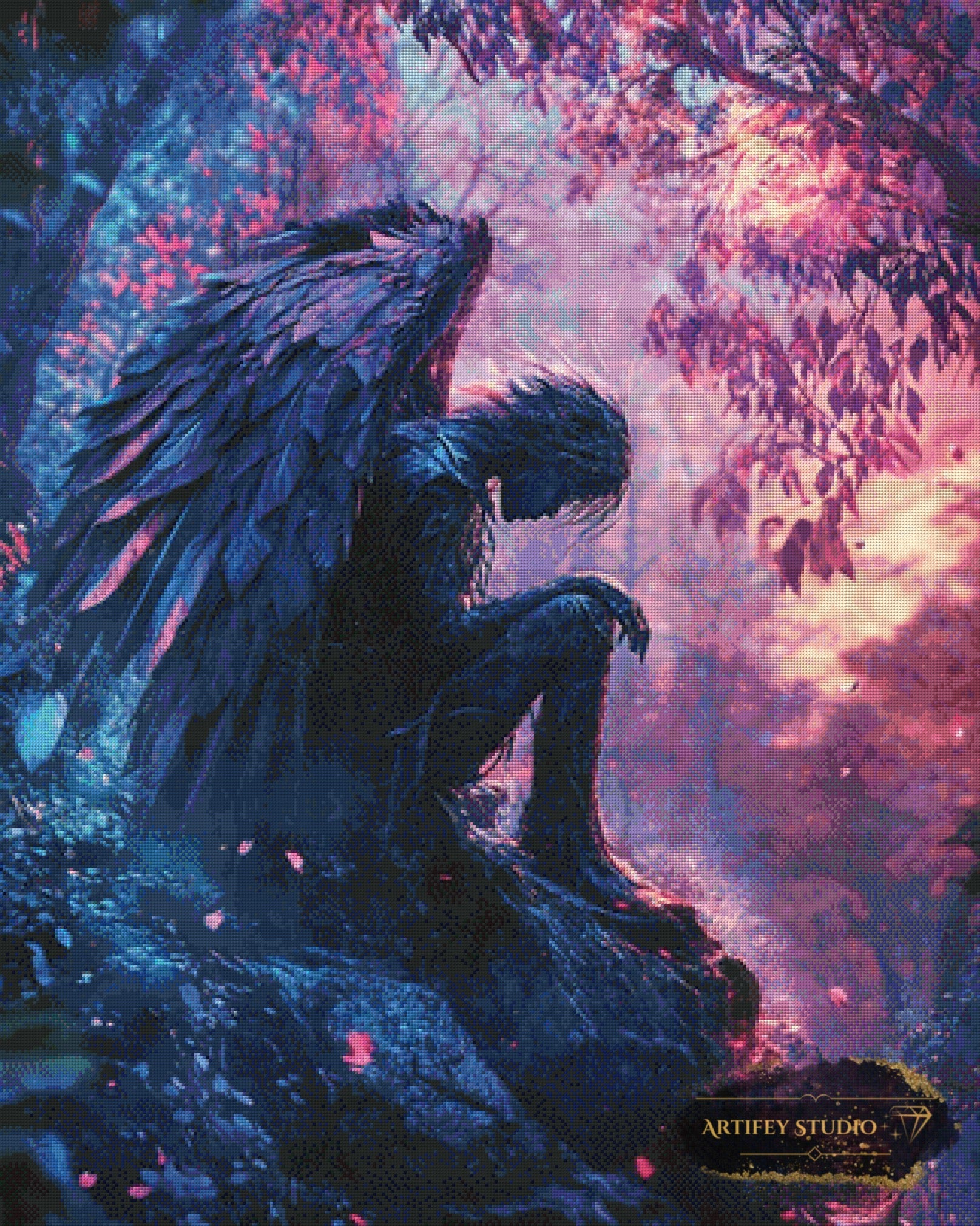 Mit diesem Diamond Painting Set gestaltest du ein detailreiches Kunstwerk in brillanten Farben. Das gezeigte Bild zeigt bereits die fertige, gepixelte Vorlage – so weißt du genau, wie dein Motiv später wirkt.