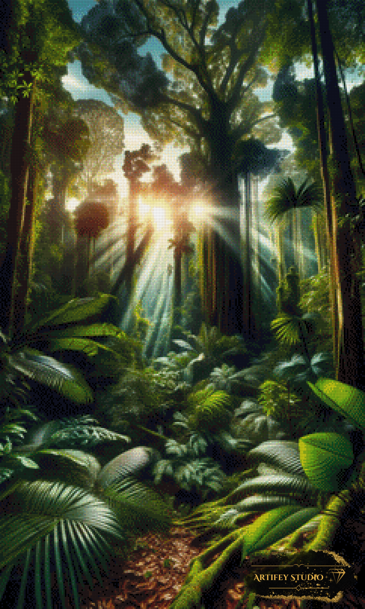 Mit diesem Diamond Painting Set gestaltest du ein detailreiches Kunstwerk in brillanten Farben. Das gezeigte Bild zeigt bereits die fertige, gepixelte Vorlage – so weißt du genau, wie dein Motiv später wirkt.
