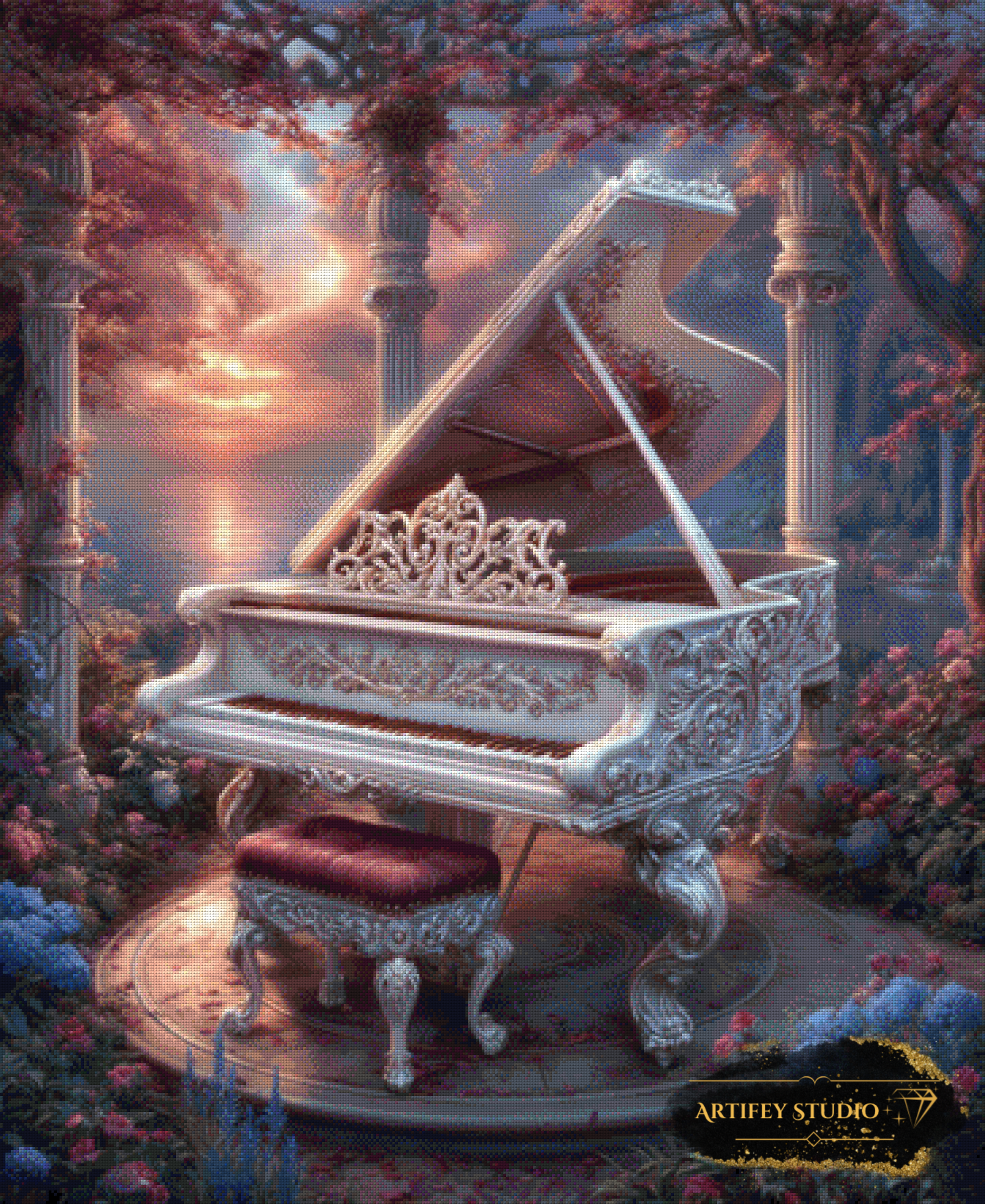 Mit diesem Diamond Painting Set gestaltest du ein detailreiches Kunstwerk in brillanten Farben. Das gezeigte Bild zeigt bereits die fertige, gepixelte Vorlage – so weißt du genau, wie dein Motiv später wirkt.