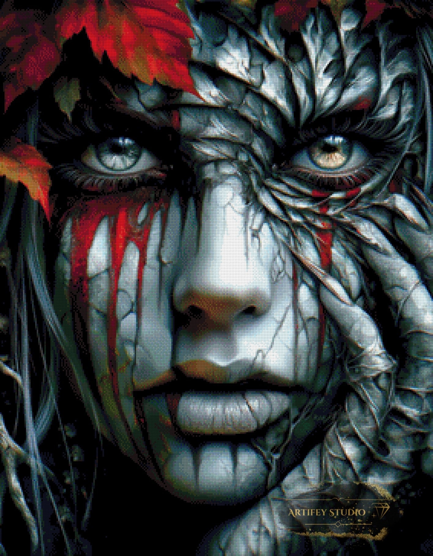 Mit diesem Diamond Painting Set gestaltest du ein detailreiches Kunstwerk in brillanten Farben. Das gezeigte Bild zeigt bereits die fertige, gepixelte Vorlage – so weißt du genau, wie dein Motiv später wirkt.