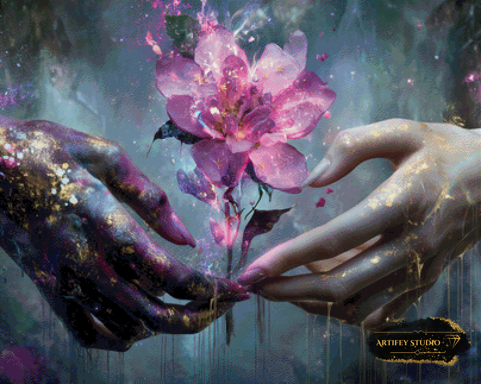 Mit diesem Diamond Painting Set gestaltest du ein detailreiches Kunstwerk in brillanten Farben. Das gezeigte Bild zeigt bereits die fertige, gepixelte Vorlage – so weißt du genau, wie dein Motiv später wirkt.